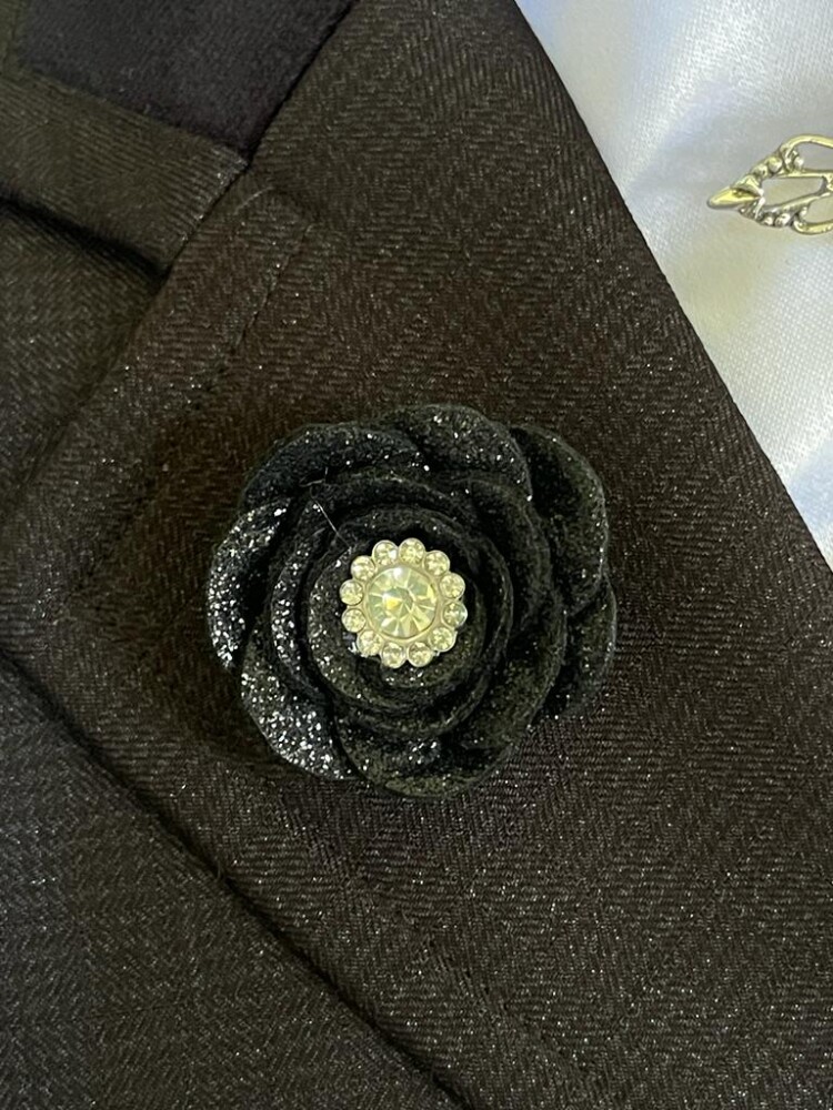 Add a touch of elegance to your ensemble with our lovely Black Shimmer Lapel Pin. Hand-stitched and carefully crafted, this lapel pin exudes sophistication and style.