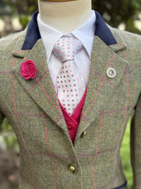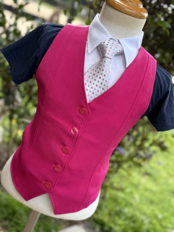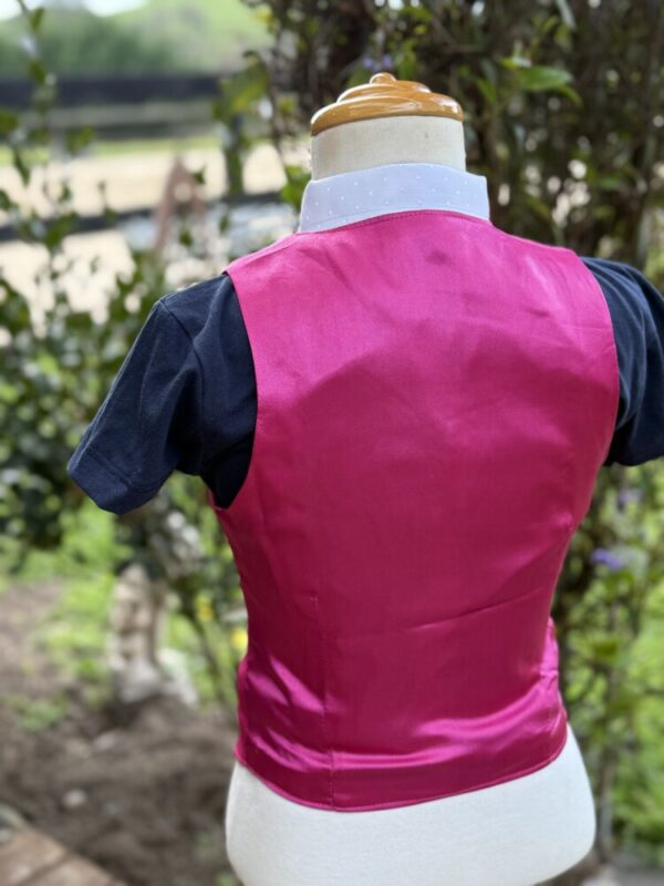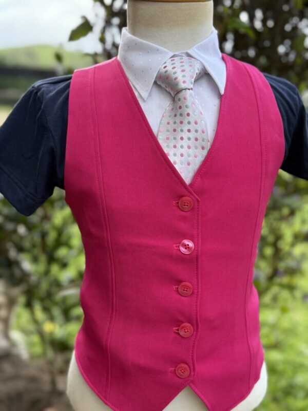 Introducing our exquisite, pink waistcoat, designed to be worn under a jacket or as a lead vest, it features a luxurious satin back for added comfort and style.