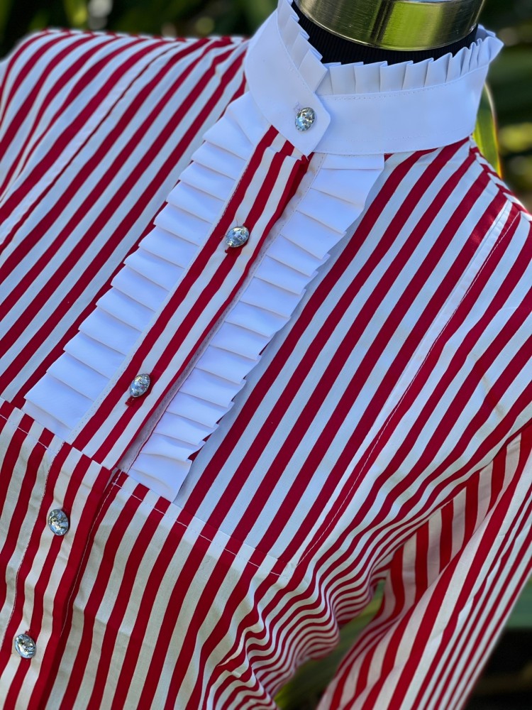Indulge in the comfort of our lovely Soft Cotton High Collar Shirt. In a charming Red/White Pinstripe design, it’s the perfect blend of style and comfort.