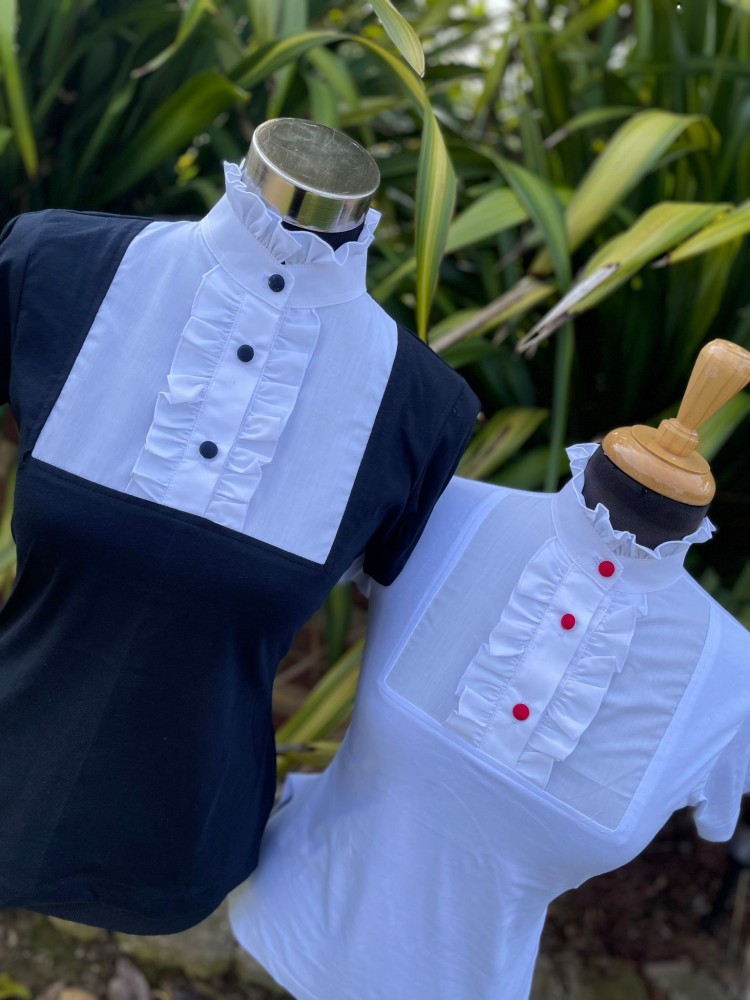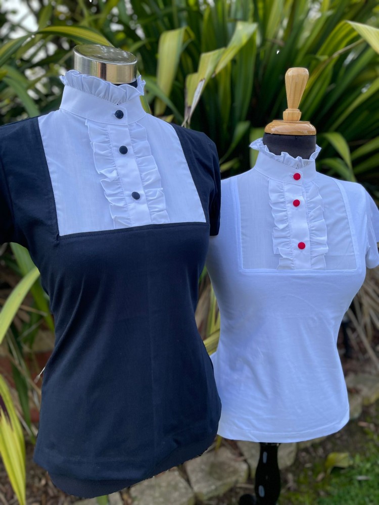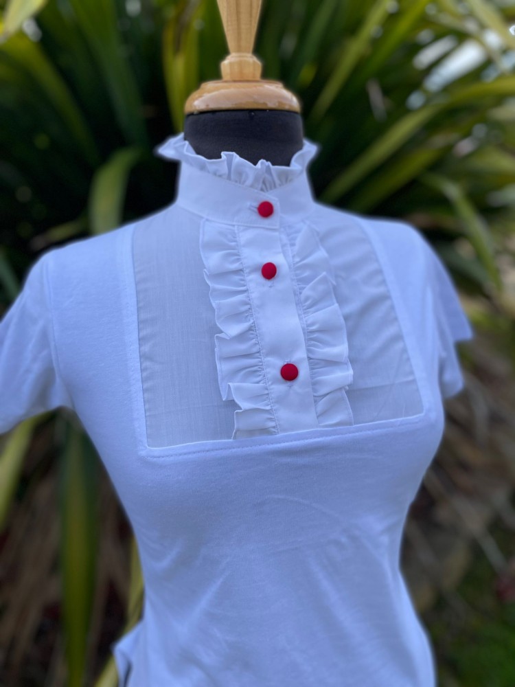 Elevate your style with our Covered Button High Collar Short Sleeve Stretch Shirt.