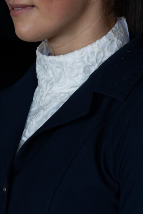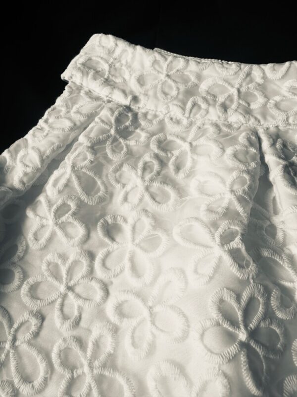 Olivia is a lovely classic white stock with floral pattern overlay .